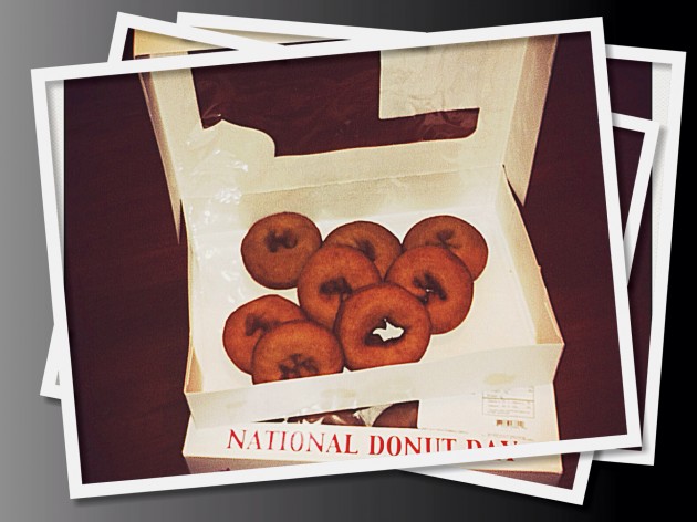 According to The Salvation Army it all started with ‘The Donut Lassies‘, aka The Donut Girls, in World War I, the war to end all wars. About 250 volunteers made the trip overseas during WWI to set up service ‘huts’ located in abandoned buildings near the French front line lines. In these huts the girls would provide writing supplies and stamps, offered a clothes-mending service to the soldiers in battle and much to the soldiers’ delight, fresh free home-made doughnuts. In fact, the girls were SO resourceful, they even rigged up a pot made from a soldier’s helmet to cook the donuts.